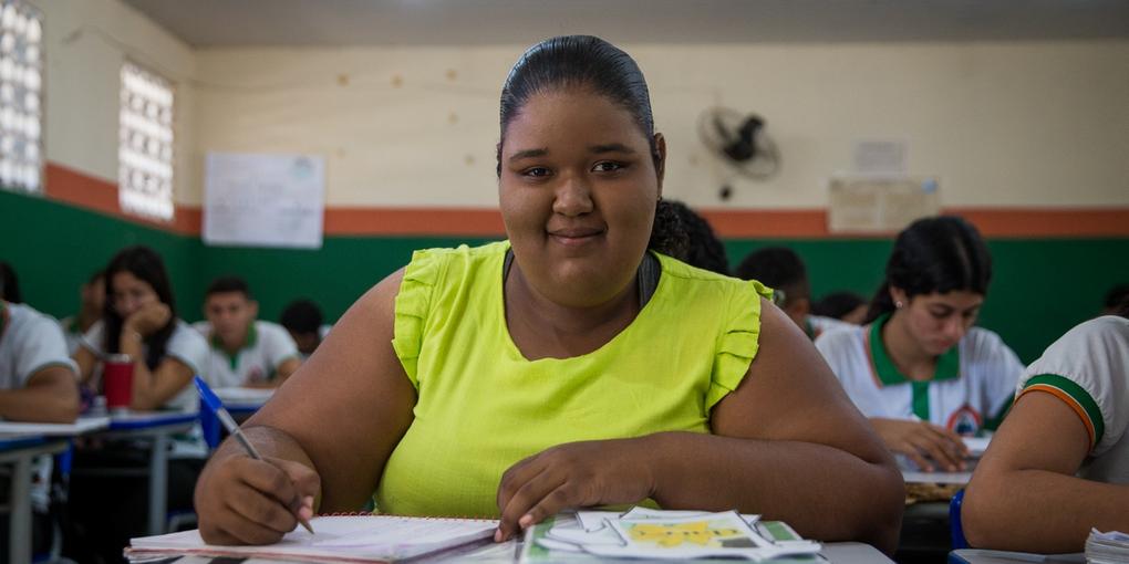 No Ensino Médio, como a localidade não tem escola dessa etapa, Taynara foi cursar na sede, na Escola Miguel Saraiva, que fica a cerca de 5km da comunidade e para isso precisava pegar o transporte escolar.