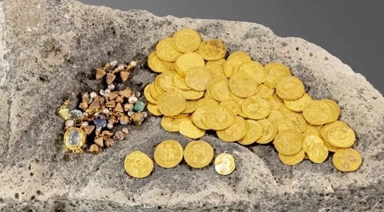 Arqueólogos descobriram um tesouro raro de moedas de ouro e joias de quase 1.400 anos na antiga cidade de Hipos (Sussita), nas colinas a leste do Mar da Galileia. A informação foi divulgada pela Universidade de Haifa (Israel) na quinta-feira (25).