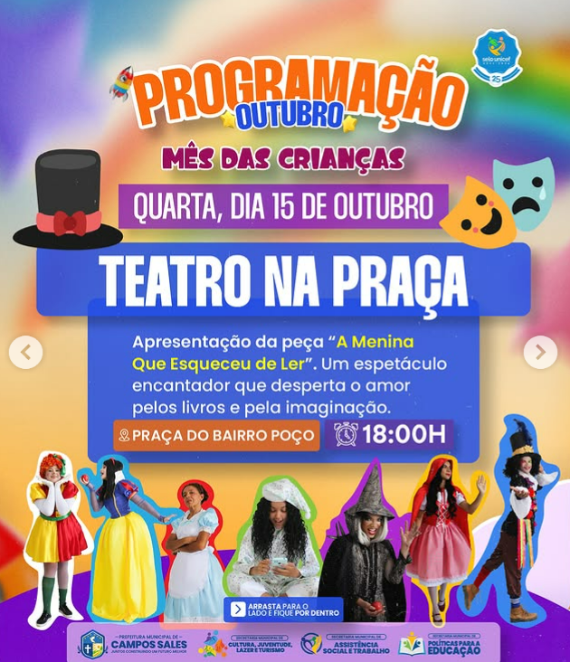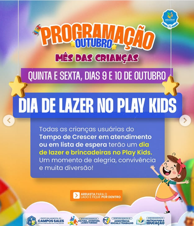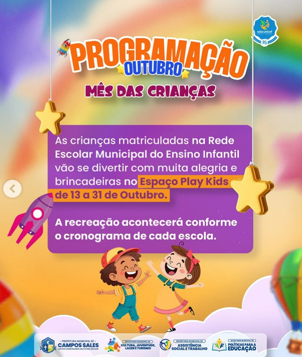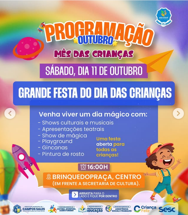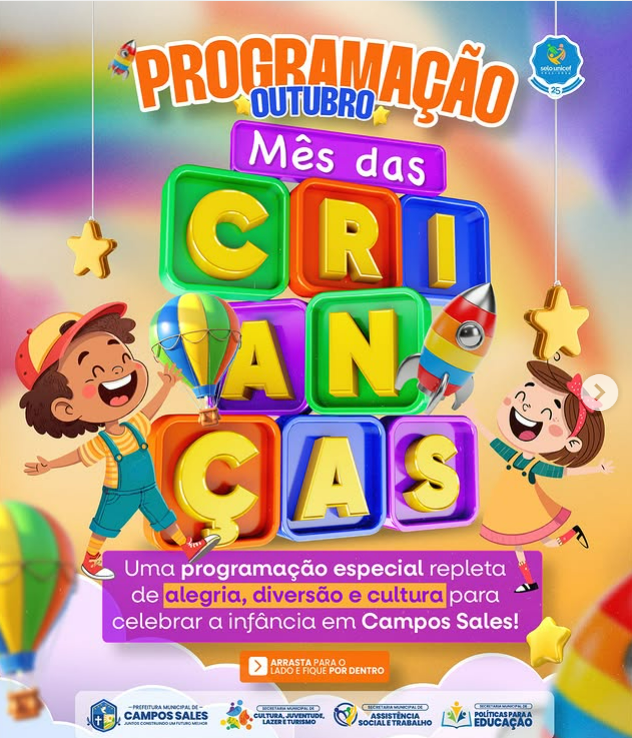 O Governo Municipal preparou uma programação incrívell cheia de alegria, diversão e atividades para comemorar o Dia das Crianças.