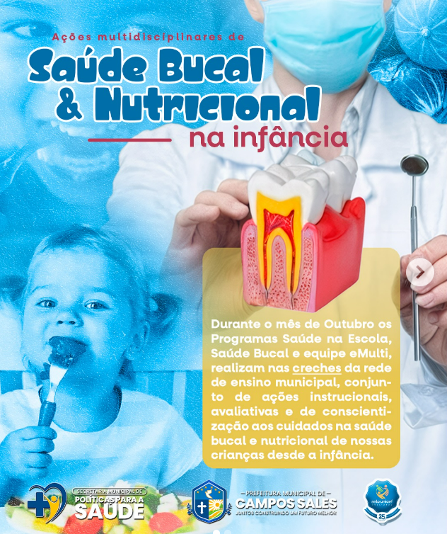 Os Programas Saúde na Escola, Saúde Bucal e equipe eMulti, farão as visitas nas creches, em parceria a Secretaria de Educação @secretariadeeducacao.cs disponibilizando serviços de avaliação bucal e nutricional, orientações sobre cuidados com a saúde na infância e diversas outras atividades, como a aplicação de flúor nos dentinhos de nossas crianças.