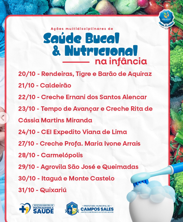 Os Programas Saúde na Escola, Saúde Bucal e equipe eMulti, farão as visitas nas creches, em parceria a Secretaria de Educação @secretariadeeducacao.cs disponibilizando serviços de avaliação bucal e nutricional, orientações sobre cuidados com a saúde na infância e diversas outras atividades, como a aplicação de flúor nos dentinhos de nossas crianças.