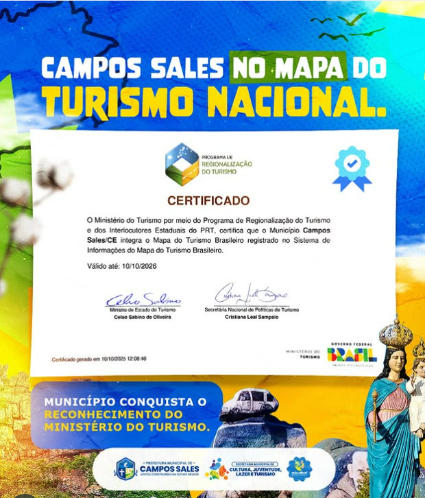 Esse importante registro reforça o compromisso da gestão municipal com o fortalecimento das políticas públicas voltadas ao turismo, à cultura e ao desenvolvimento local.