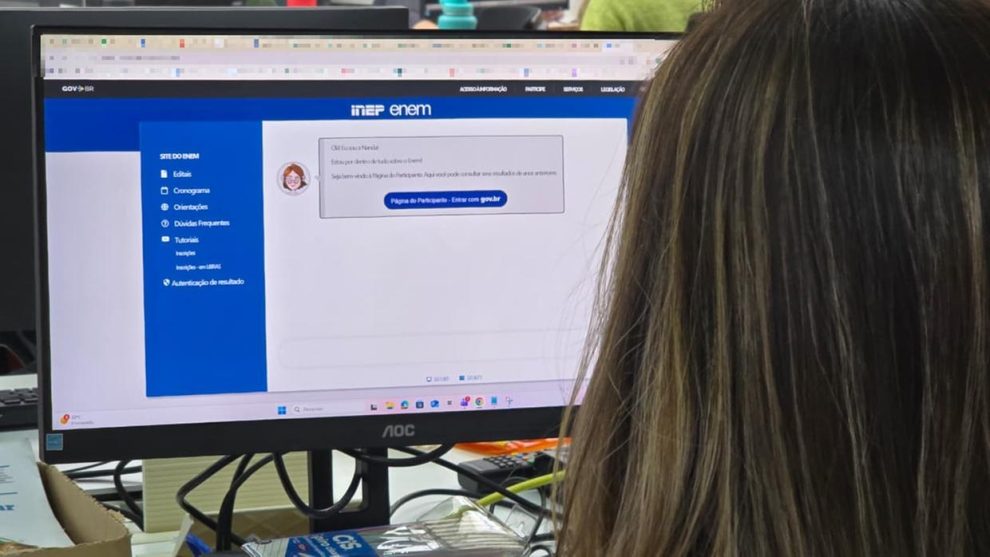Tela de computador aberta na 'Página do Participante' no site do Inep