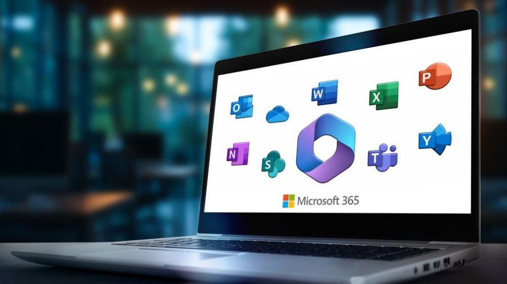 Tela de notebook mostra aplicativos do Microsoft 365.