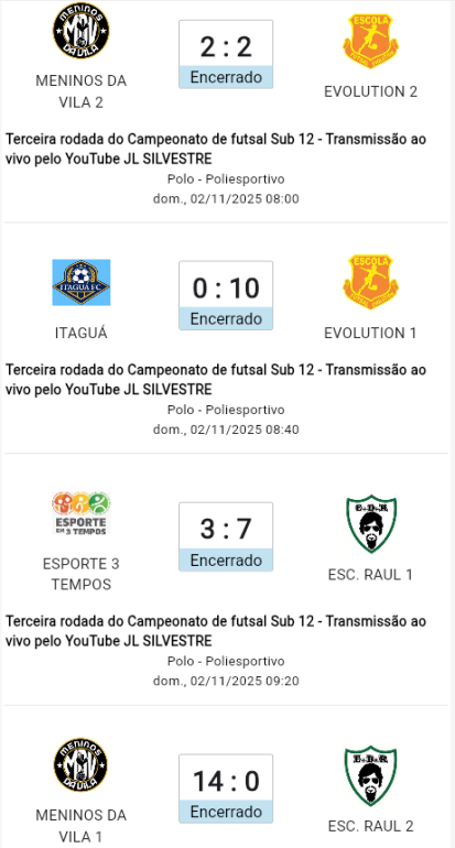 Neste domingo de Finados, (2), acoonteceu a terceira rodada do Campeonato de Futsal Base, promomovido pela Administração Municipal, através da Secretaria de Desporto.
