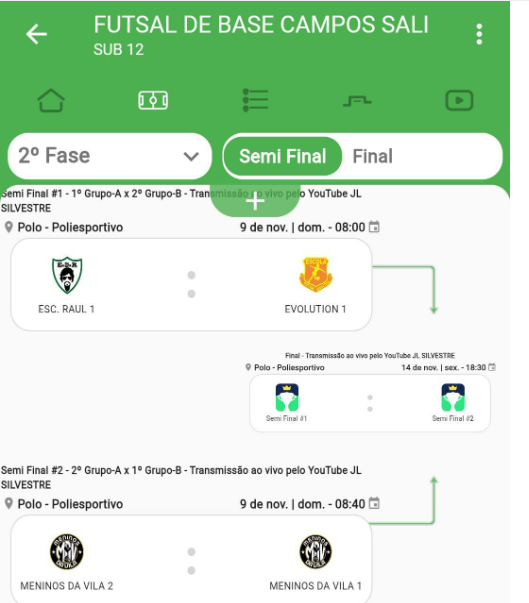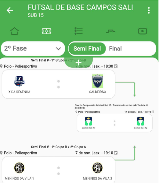 A categoira sub-15 também ja tem a fase semi-final definida com os seguiuntes jogos: