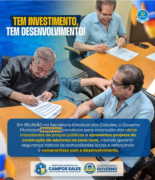Em reunião na Secretaria Estadual das Cidades, o Governo Municipal firmou a renovação de convênios para a finalização das obras inacabadas de praças públicas.