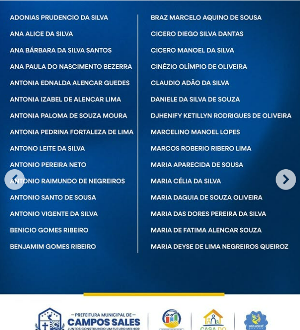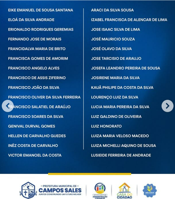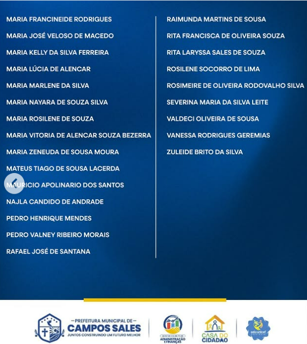 Os documentos feitos através da Casa do Cidadão, já estão prontos para serem retirados. Os nomes citados na lista deverão dirigir-se até a Casa do Cidadão (Rua Júlio Norões, N°564, centro),  das 08h às 14h,  de segunda a sexta.