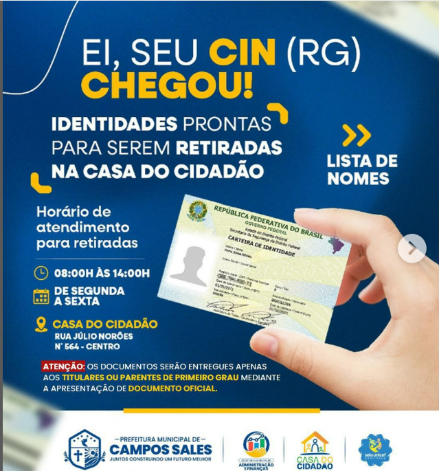 CAMPOS SALES: ATENÇÃO – IDENTIDADES PRONTAS