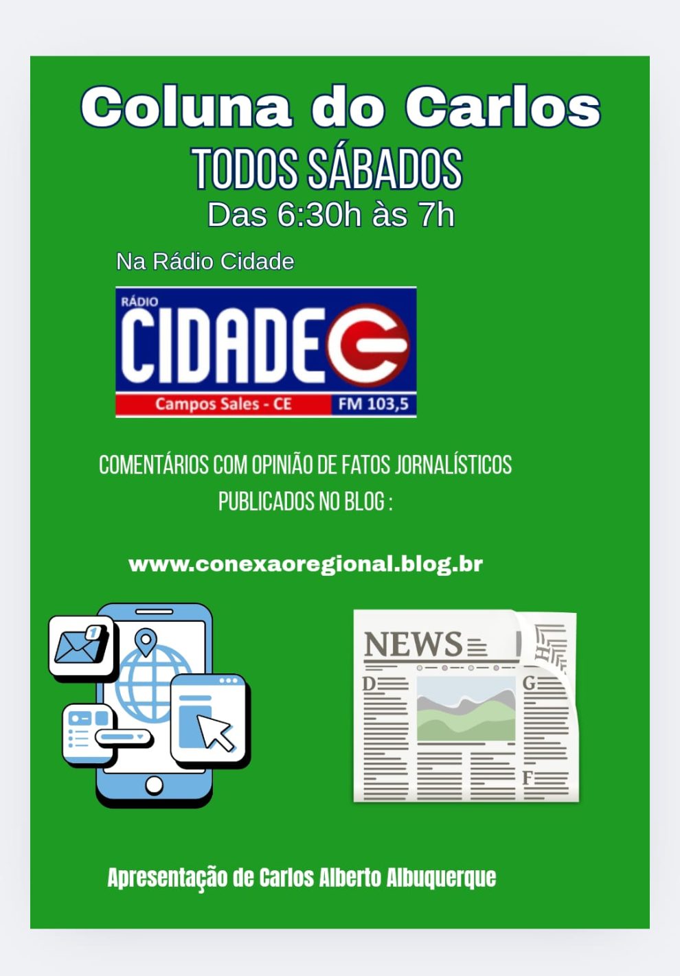 CAMPOS SALES: COLUNA DO CARLOS AGORA NO RÁDIO, TODOS OS SÁBADOS ÀS 06h30 -VÍDEO
