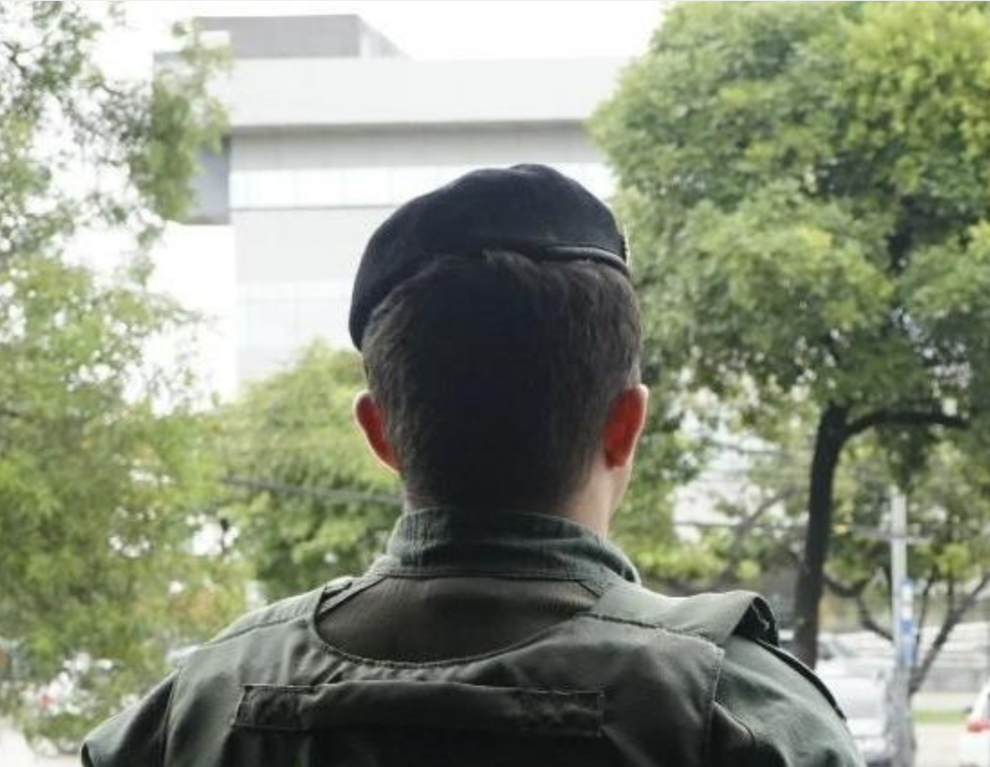 foto de um policial militar de costas.