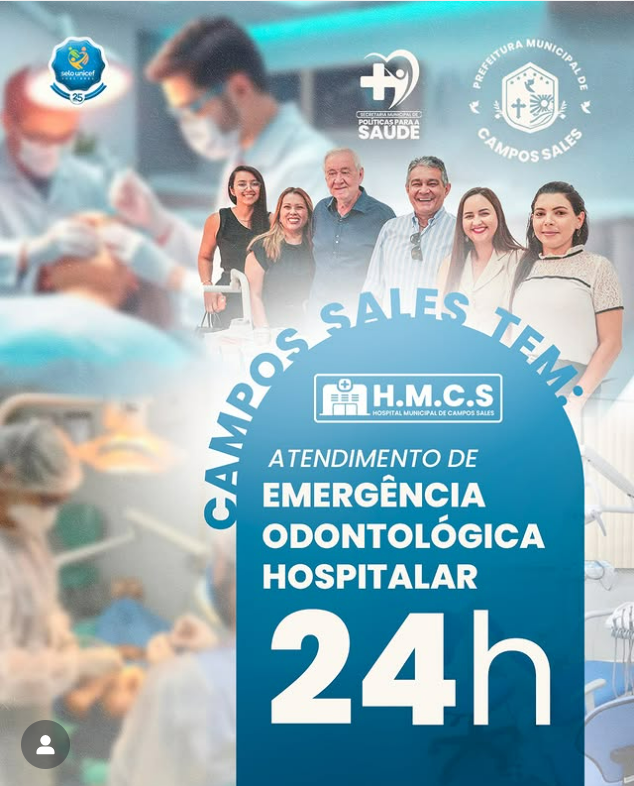 Pacientes do Hospital Municipal de Campos Sales que chegam com complicações de emergência bucal, são avaliados pela equipe de Saúde Bucal do município e conforme caso, são levados ao consultório odontológico para realização de procedimentos se emergência ou encaminhados para a Atenção Primária em casos de menor complexidade. ❤️🩹