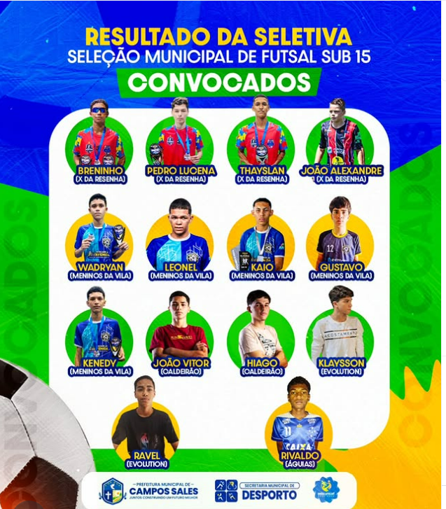 CAMPOS SALES: SECRETARIA DE DESPORTO CONVOCA ATLETAS DA SELEÇÃO DE FUTSAL SUB-15