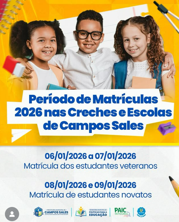 Atenção! Prezados(as) pais e/ou responsáveis, fiquem atentos/as ao período de matrículas 2026.