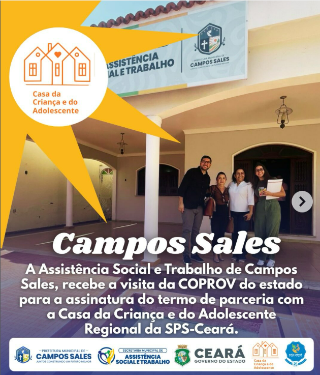 A Secretaria Municipal de Assistência Social e Trabalho de Campos Sales segue empenhada na execução de políticas públicas responsáveis, alinhadas às diretrizes estaduais, com foco na proteção social, no atendimento humanizado e na promoção da cidadania de crianças e adolescentes.