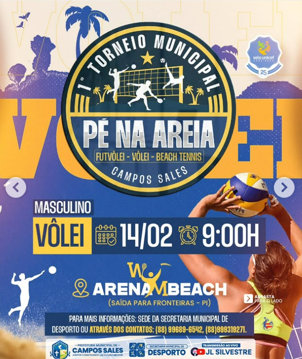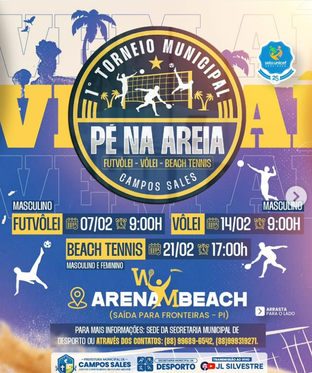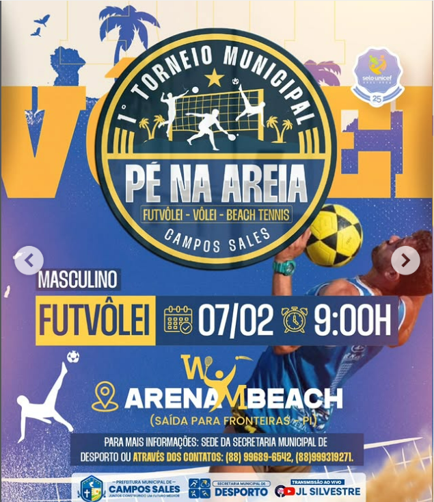 📲 Inscrições e informações: Procure a Sede da Secretaria Municipal de Desporto ou entre em contato: (88) 99689-6542 | (88) 99931-9271.