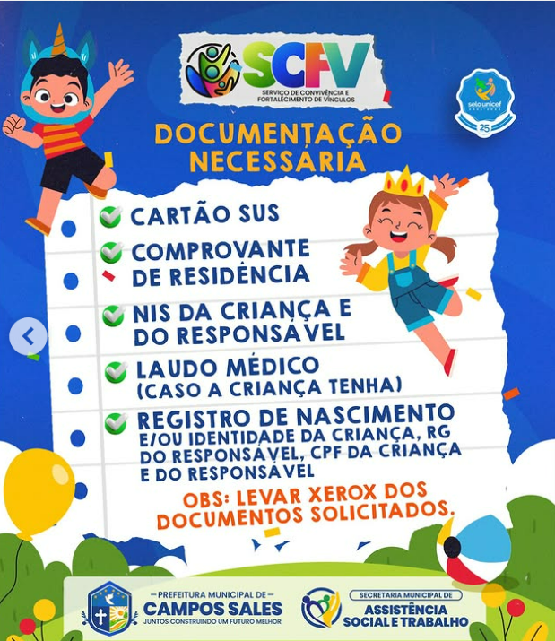 O Serviço de Convivência e Fortalecimento de Vínculos oferece atividades em grupo, oficinas educativas, culturais, recreativas e esportivas, com o objetivo de fortalecer os vínculos familiares e comunitários, promover a convivência social, prevenir situações de risco e contribuir para o desenvolvimento social e emocional dos participantes, garantindo mais inclusão, cidadania e qualidade de vida para a comunidade.
