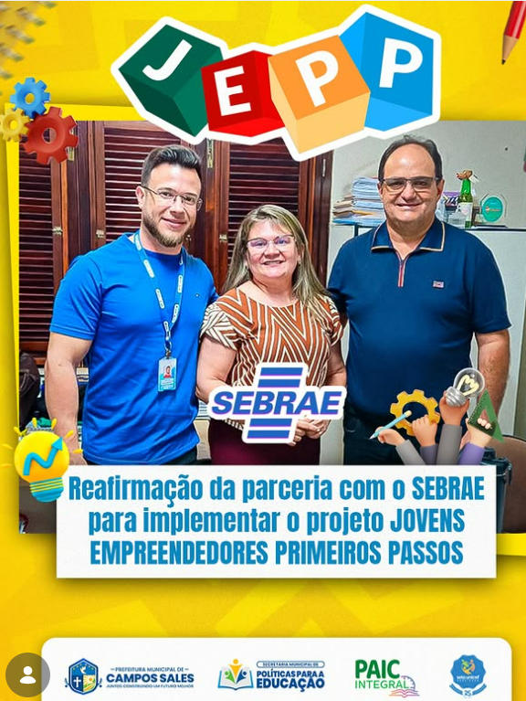 A Secretaria Municipal de Políticas para a Educação, através do Secretário Hildefran Alencar Jurumenha Ribeiro, reafirma parceria com o SEBRAE para implementar o projeto JOVENS EMPREENDEDORES PRIMEIROS PASSOS.