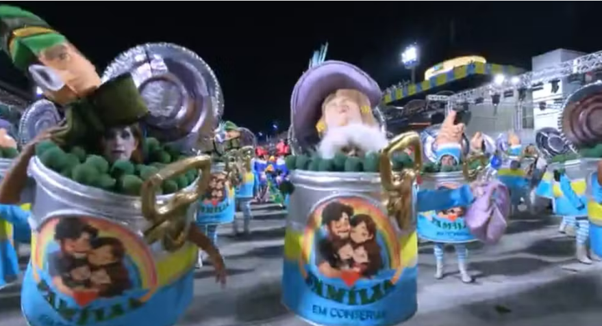 Ala da Acadêmicos de Niterói representou famílias de valores conservadores como famílias enlatadas em conserva — Foto: Reprodução/TV Globo