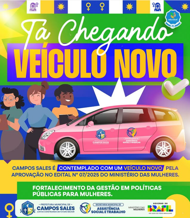 Nosso município está entre as 289 cidades selecionadas em todo o Brasil — sendo 42 no Estado do Ceará — para receber UM VEÍCULO por meio da aprovação no Edital Nº 07/2025 do Ministério das Mulheres.