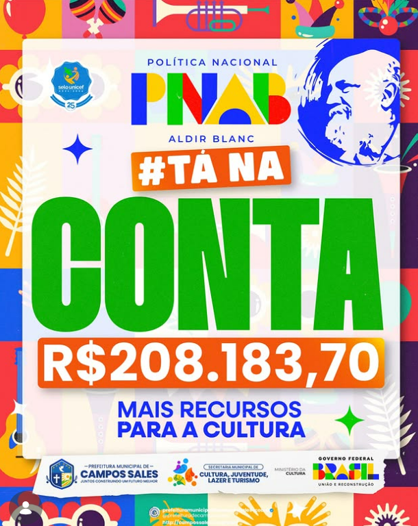 O recurso da Política Nacional Aldir Blanc já está na conta do município de Campos Sales.