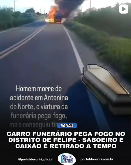 CARRO DE FUNERÁRIA INCENDEIA NO DISTRITO DE FELIPE, EM SABOEIRO (CE)