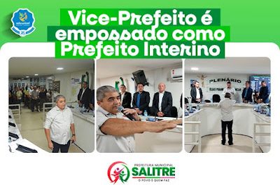 O vice-prefeito de Salitre, Ronaldo Pereira assumiu interinamente o cargo de prefeito interino do município. A posse ocorreu em virtude do...