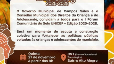 No dia 27 de novembro, a partir das 8h, acontecerá o I Fórum Comunitário do Selo UNICEF – Edição 2025-2028, um momento de escuta, participação e...