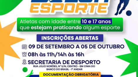 Atenção, jovens atletas de Campos Sales! O Governo do Estado do Ceará, através do programa Ceará Atleta, está com inscrições abertas para o Programa...