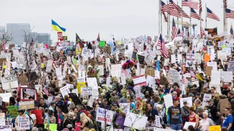 Neste sábado (5), milhares de pessoas protestaram em Washington e em outras cidades dos Estados Unidos contra o governo, nos maiores atos de...