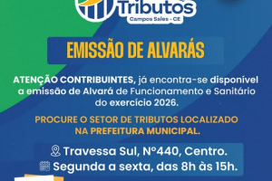 ⚠️ Atenção Contribuintes, já encontra-se disponível a emissão de Alvará de Funcionamento e Sanitário do exercício 2026.