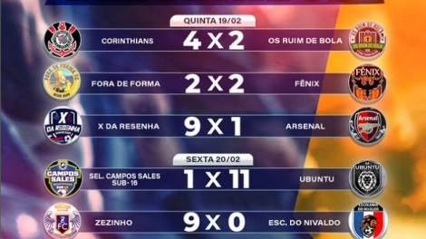 ⚽️ Resultados dos jogos das rodas de quinta (19/02) e sexta (20/02) da Copa Pré-Municipal de Futsal 2026!