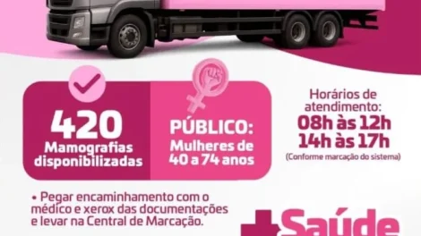 Carreta atenderá mulheres de 40 a 74 anos entre os dias 06 e 11 de abril, ampliando o acesso à prevenção no município….