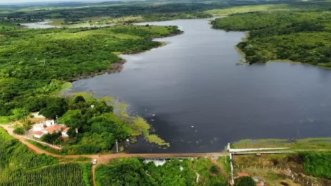 O açude Pau Preto, localizado em Potengi, no Cariri, atingiu 100% da capacidade neste sábado (4) e voltou a sangrar após um ano sem registrar vertimento.