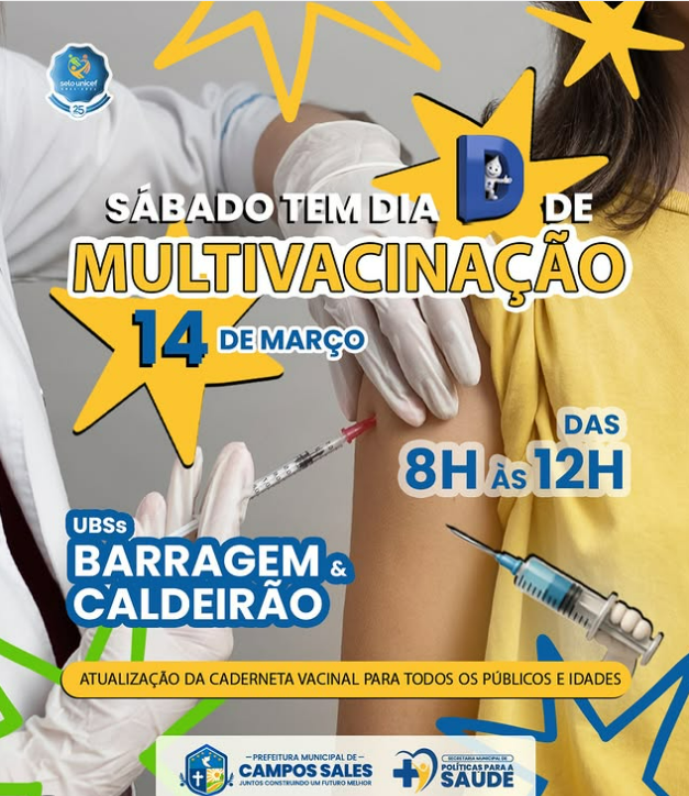A Secretaria de Saúde convida toda a população para participar do Dia D de Multivacinação, que acontecerá neste sábado, dia 14, em ação com o objetivo atualizar as cadernetas de vacinação de todos os públicos e idades, garantindo mais proteção e prevenção para toda a comunidade.