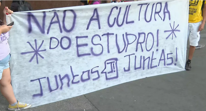 Faixa em protesto contra a cultura do estupro em BH — Foto: TV Globo/ Reprodução
