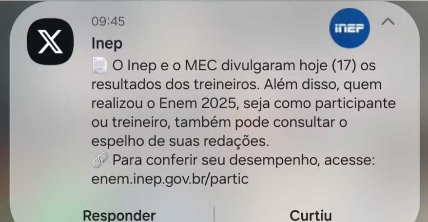 A reportagem questionou o Instituto Nacional de Estudos e Pesquisas Educacionais Anísio Teixeira (Inep) sobre a divergência nos dados. Em resposta, o órgão informou que: “Não há alteração ou erro na nota final da redação do Enem 2025, disponível no Boletim de Desempenho.”