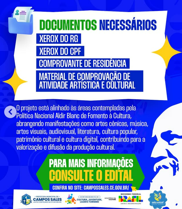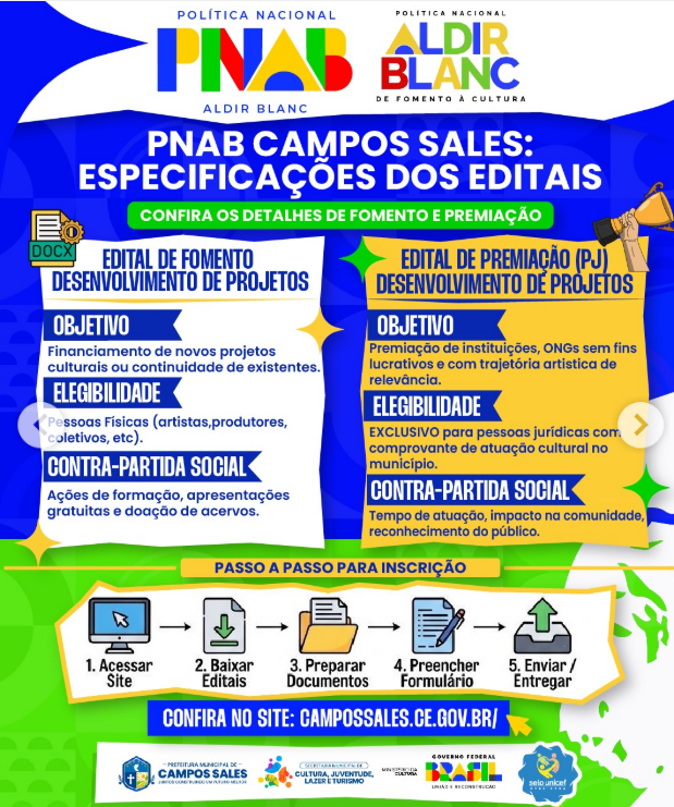 Já estão disponíveis os editais da Política Nacional Aldir Blanc (PNAB) em Campos Sales!