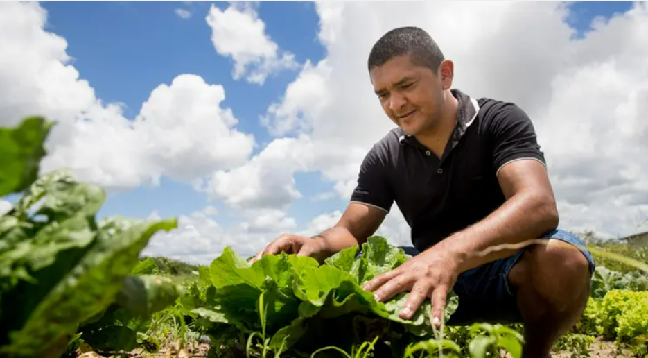 Hoje, toda a família produz orgânicos, que incluem acelga, alface, cebolinha e coentro – conhecidos como a dupla “cheiro-verde” – e salsa, além de maracujá, pimentão e tomate. A produção, no começo, contou com o apoio do Agroamigo, com empréstimos para auxiliar na captação de água para irrigar as plantações.