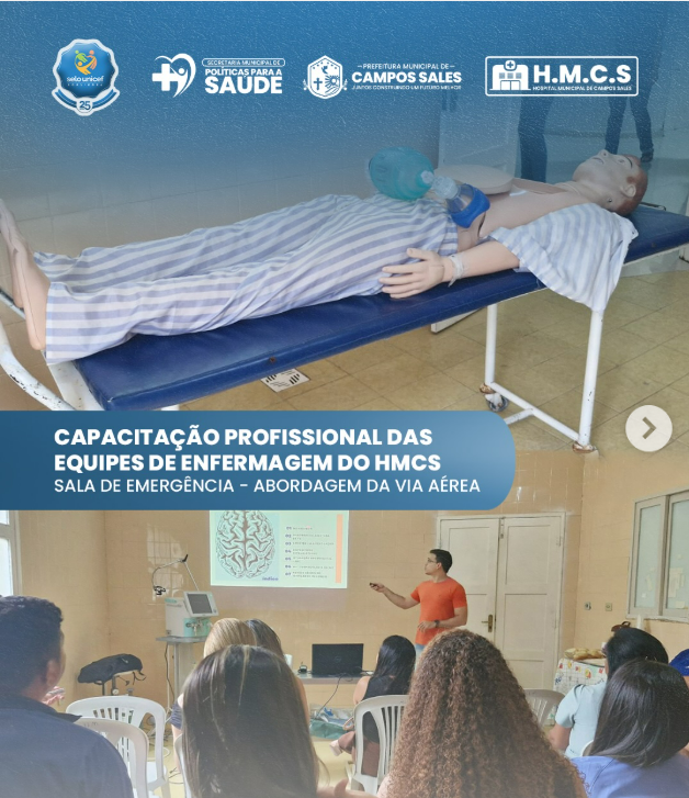 Desta vez, foi realizada uma capacitação com as equipes de enfermagem do Hospital Municipal, com foco na sala de emergência: abordagem da via aérea — um tema essencial para o manejo adequado de situações críticas.