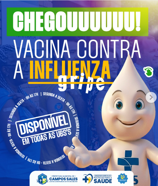 A Secretaria Municipal de Saúde informa que a vacina contra a influenza (gripe) já chegou ao município e está disponível em todas as unidades de saúde.