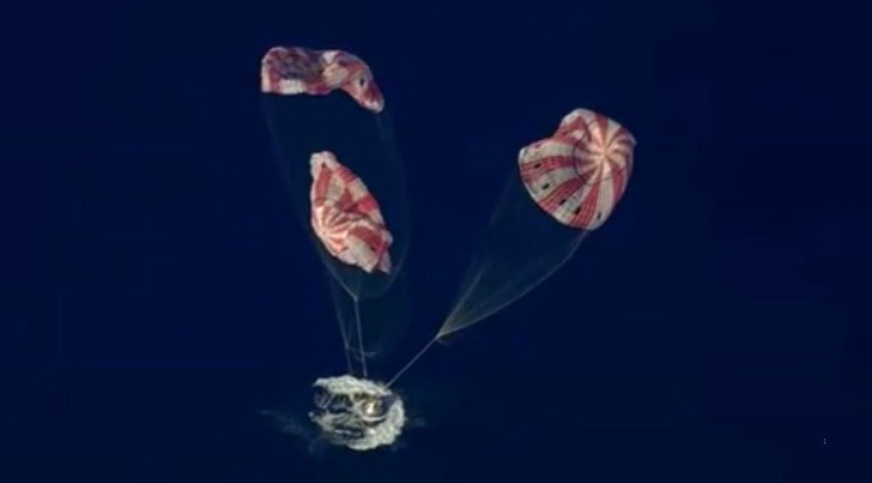 O retorno foi concluído com um pouso controlado no mar, próximo à costa de San Diego, nos Estados Unidos, após uma descida considerada uma das etapas mais críticas da missão