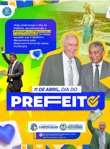 Neste dia dedicado a quem exerce uma das funções mais desafiadoras da administração pública, o Governo Municipal vem parabenizar todos os prefeitos e prefeitas pelo compromisso diário com o desenvolvimento de nossas cidades e o bem-estar de nossa gente.