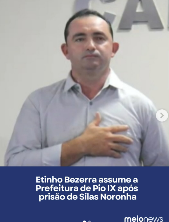 MUDANÇA NA PREFEITURA | O vice-prefeito de Pio IX, Etinho Bezerra (MDB), assumiu interinamente a Prefeitura neste sábado (11), após a prisão do prefeito Silas Noronha (PSD).