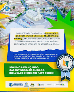 A Secretaria Municipal de Assistência Social e Trabalho de Campos Sales conquistou o Selo FNAS 2025 (Fundo Nacional de Assistência Social), um importante reconhecimento pelo compromisso com a gestão responsável, transparente e eficiente dos recursos da Assistência Social.
