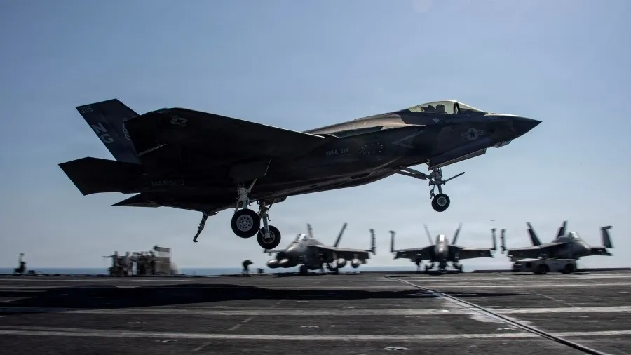 Caças americanos no porta-aviões USS Abraham Lincoln, que apoia as operações no Oriente Médio