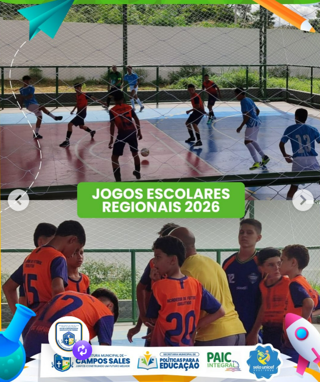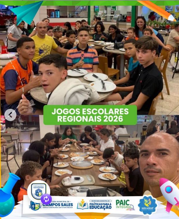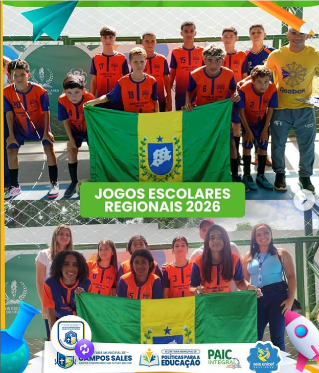 Os estudantes das escolas EEFETI Tabelião Vicente Alexandrino e EEIF Agrovila São José representaram o município de Campos Sales nos Jogos Escolares Regionais 2026, na modalidade futsal masculino e feminino em quadra, evidenciando dedicação, disciplina e espírito esportivo.