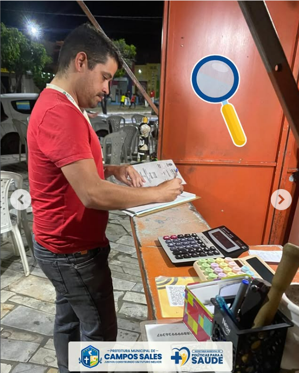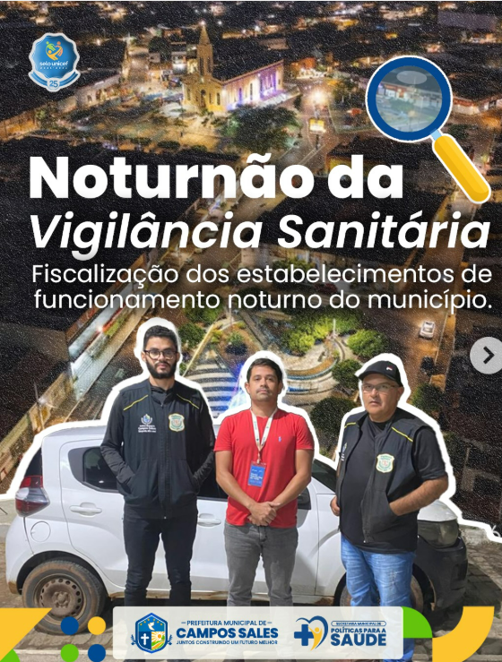 A Vigilância Sanitária de Campos Sales iniciou inspeções sanitárias no período noturno, com o objetivo de ampliar o alcance das ações de fiscalização no município. A iniciativa busca acompanhar de forma mais efetiva os estabelecimentos que funcionam à noite, como bares, restaurantes, lanchonetes e outros serviços, garantindo o cumprimento das normas sanitárias vigentes.