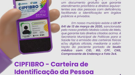 A Secretaria Municipal de Saúde informa que já está disponível a Carteira (Digital) de Identificação da Pessoa com Fibromialgia, através do site: cip...