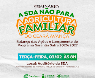 O Governo do Ceará, por meio da Secretaria do Desenvolvimento Agrário (SDA), realiza no próximo dia 3 de fevereiro, a partir das 15h, no auditório da...